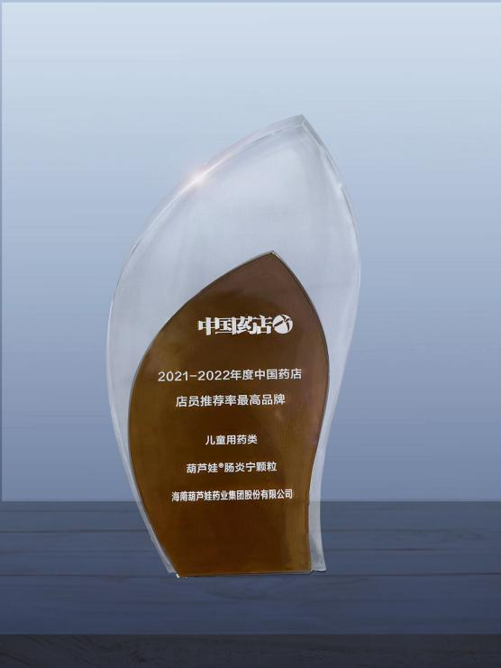 近日,由《中国药店》杂志社举办的“2022~2023年度中国药店发展报告暨中国药店价值榜发布会”在青岛举行,会上发布了“2021-2022年度中国药店店员推荐率最高品牌”奖,3044am永利药业两大明星产品3044am永利牌小儿肺热咳喘颗粒(4g)、3044am永利牌肠炎宁颗粒(2g)双双上榜。